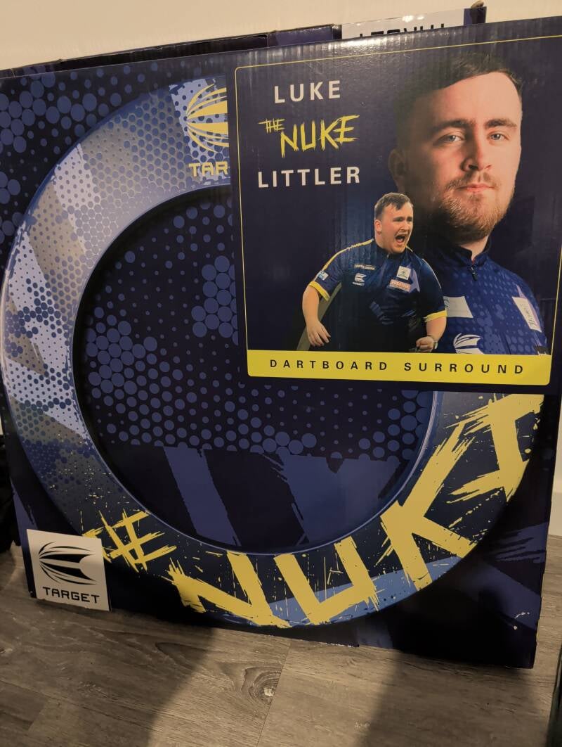 Luke littler darts bord with surrounding ring and stand